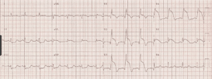 9. You are in an outpatient clinic tending to a patient with chest pain and hypertension who has the following ECG tracing: