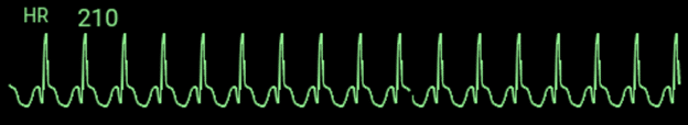 A patient is brought to the ED with dyspnea and palpitations with a heart rate of 210 bpm. She is hooked to a 12-lead electrocardiogram and shows the following tracing. What is the rhythm?