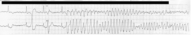 A. Rationale: Torsade’s de pointes is a form of polymorphic ventricular tachycardia occurring in the context of a prolonged QT interval. It is characterized in the 12-lead ECG as a rapid, irregular QRS complex that twists around the isoelectric line at a rate of about 200–250 bpm. This tachyarrhythmia occurs in bursts and then resolves spontaneously, or it may develop into VF, causing significant hemodynamic compromise and even death. To diagnose torsade’s de pointes, the patient must have evidence of both paroxysmal ventricular tachycardia and a prolonged QT interval.