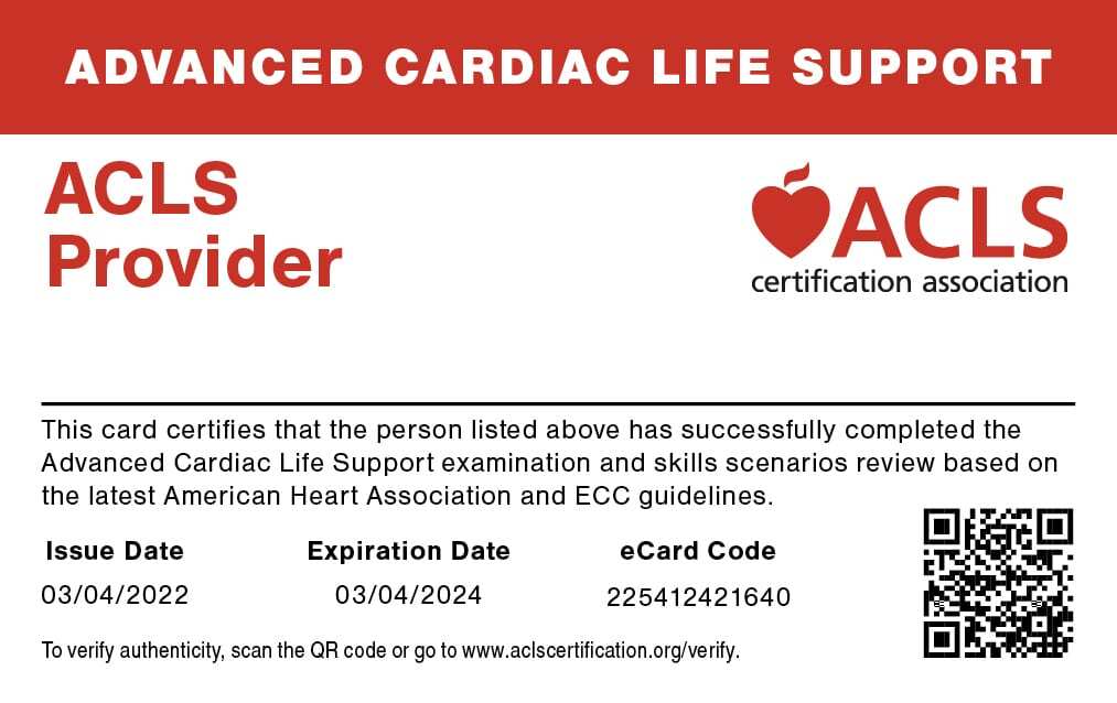 Our team of medical experts is proud of offering medical professionals accredited certification and renewal courses that prioritize the hectic schedules of healthcare providers. By choosing ACLS Certification Association for your certification and recertifications, you’ll receive dedicated assistance throughout the process. After passing your final exam, you’ll be provided with a printable digital provider card. We also send reminders when it is time to recertify.