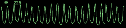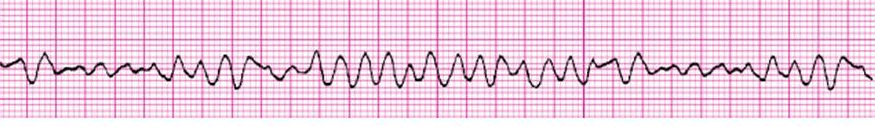 8. A 37-year-old woman is in cardiac arrest. CPR is started within 1 minute of collapse, and defibrillation is provided at about 4 minutes following the arrest. Her initial rhythm is shown below.