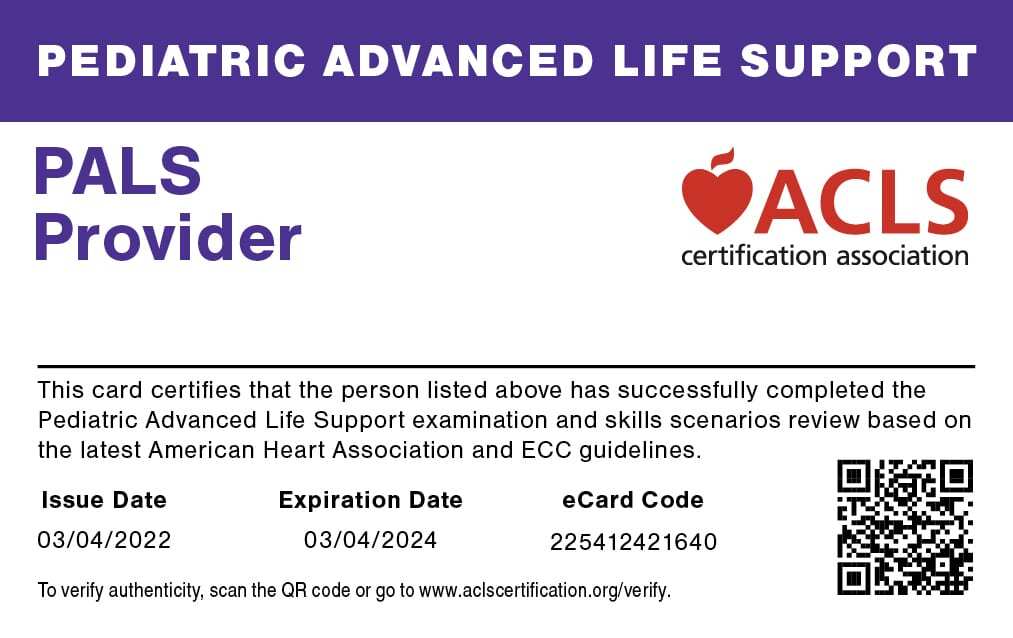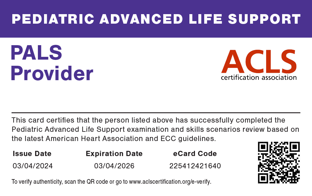 After completing our PALS online certification, your printable provider card is sent directly to your email.